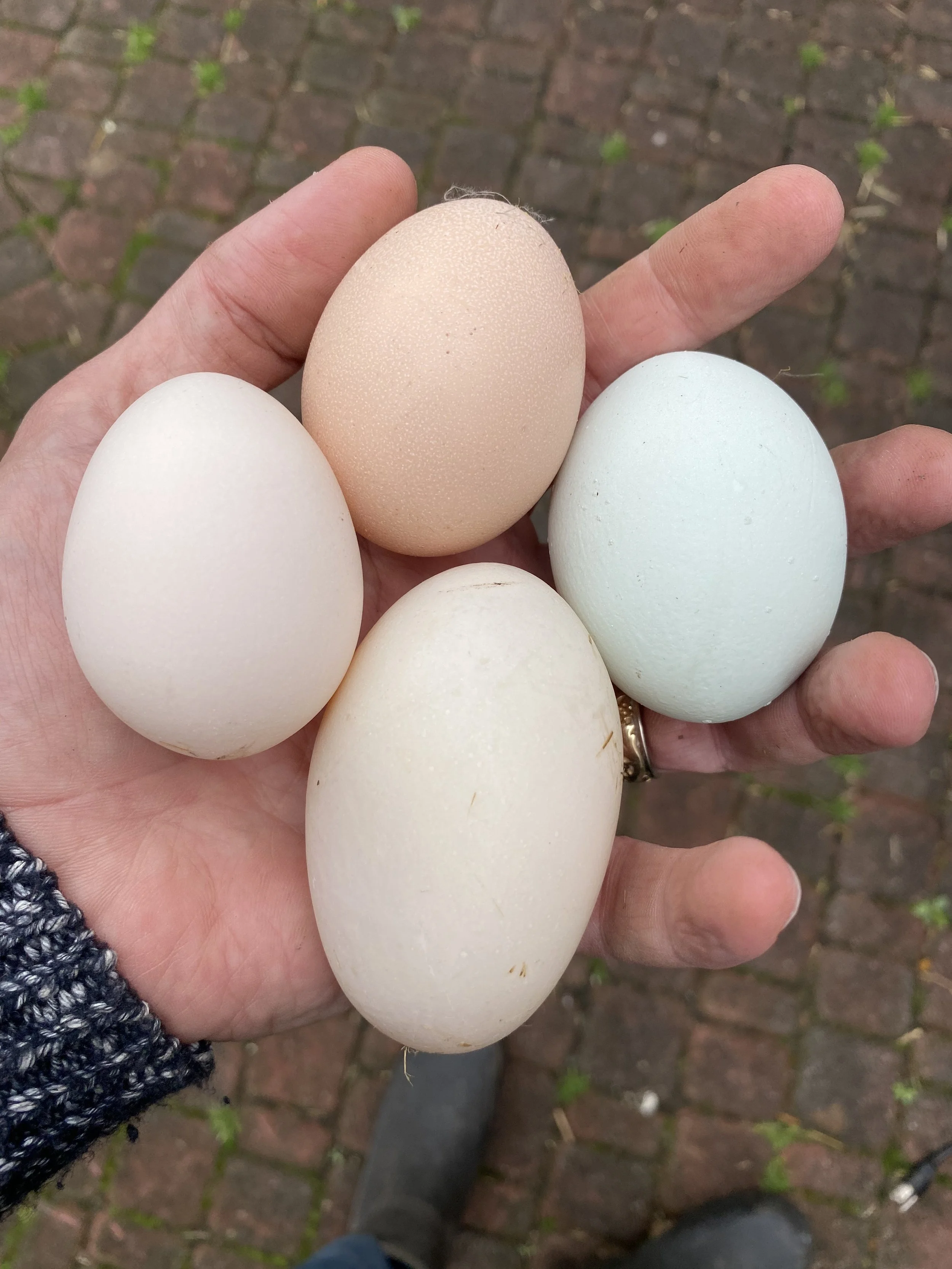 Why are Duck eggs bigger? Because ducklings have to be ready to swim almost the moment they hatch! They need more "fuel" (yolk) inside the egg to grow big and strong before they come out. Eggs also come in so many different colors!